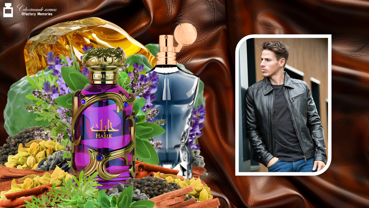 En el imaginario actual, este perfume se menciona con frecuencia junto a Le Male Essence de Parfum por su esqueleto de salida y corazón, hasta el punto de que en Fragrantica aparece explícitamente esa asociación. Pero el mérito de Habik está en cómo desplaza el final: en vez de rematar con el cuero y la vainilla característica del francés, conduce la historia hacia una base más amaderada, tonka y seca, con otra intención.