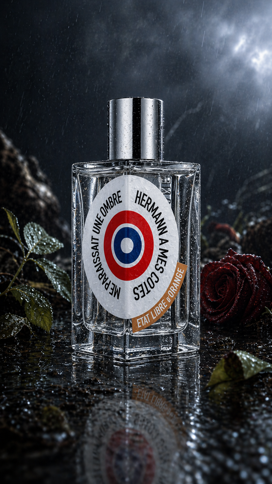 Hermann à mes Côtés me Paraissait une Ombre de Etat Libre d’Orange es un perfume de tierra mojada, rosa húmeda, incienso, vetiver, patchouli y ambroxán. Es una fragancia artística, introspectiva y distinta, ideal para quienes buscan una experiencia olfativa con más profundidad que simple agrado inmediato.