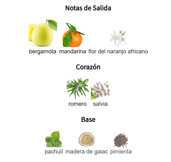 Su perfil aromático destaca por el frescor de las notas cítricas, principalmente mandarina, envueltas en un halo de notas herbales, donde el romero parece jugar un papel importante. La presencia de maderas suaves, como el pachulí, aporta una calidez que complementa la frescura sin opacar su carácter natural y auténtico. La fragancia se percibe como bien trabajada, con un toque clásico que evita cualquier sensación sintética, reflejando la maestría de perfumistas expertos en la elaboración de cítricos, una tarea que, como bien saben los profesionales, no es sencilla.